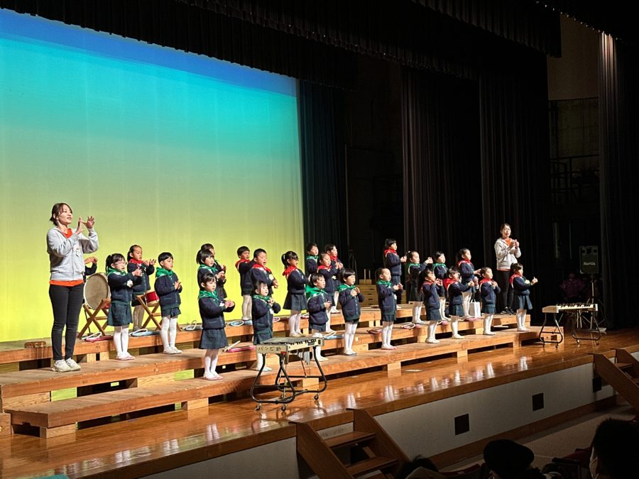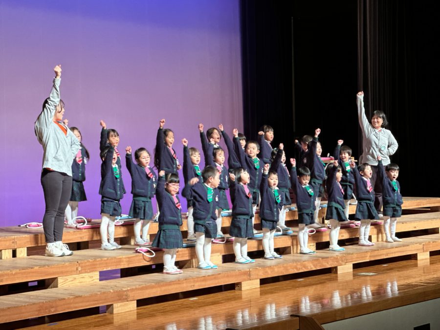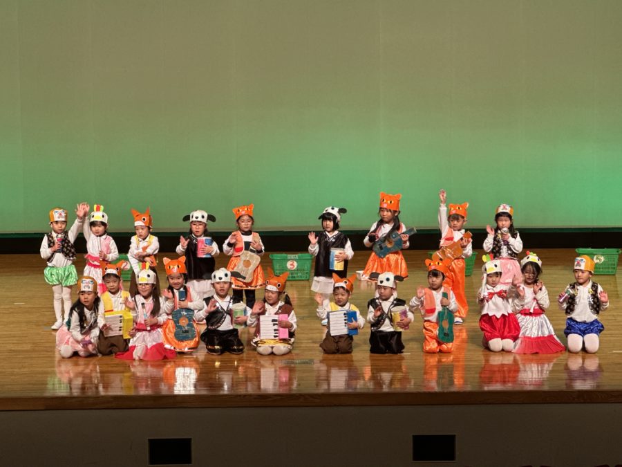 今年の発表会のテーマを『自分らしさ』とし、自分の好きなコト・モノと向き合い、お家の方から見たその子らしさ、お友達から見たその子らしさ を考える良い機会となりました。練習する中で覚えることや考えることもあり、たくさんの小さな壁を乗り越えてきました。だんだんと覚えてくると、それが少しずつ楽しさに変わり、さらにお家の人に見てもらうんだという意気込みに変わっていきました。この一生懸命に頑張る姿は、大きくなったときの力になると思います。そして、心に残る行事になっていくのでしょうね。