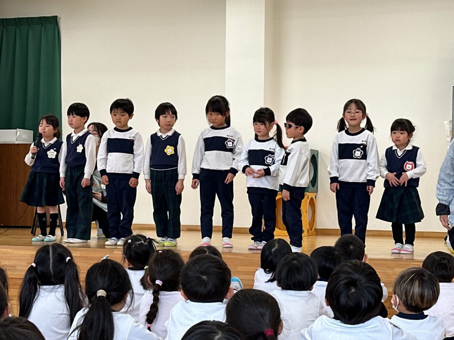3月生まれのお誕生会では、お誕生者の子に「一年間で頑張ったことはなんですか?」のインタビュー。それぞれのお友達が色々なことを頑張りました。みんな頑張りましたね。