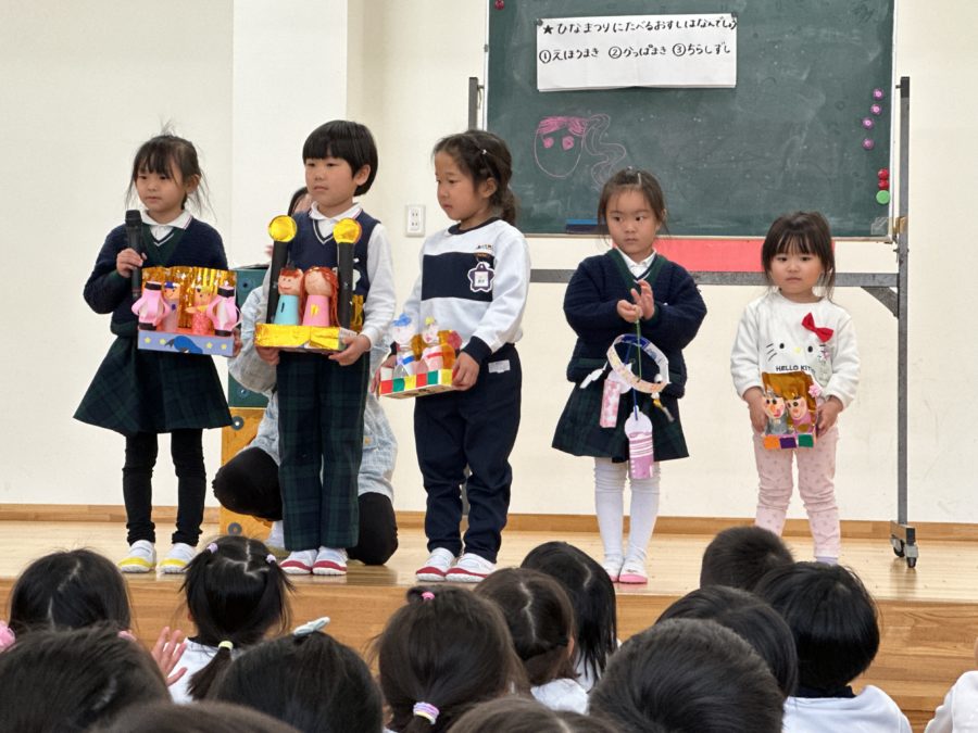 3日(火)おひな祭り集会を行いました。3月3日は「おひなまつり」、みんなの健康を願ってお祝いをしました。