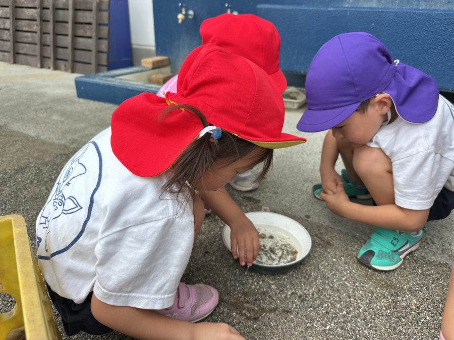 ご飯が炊けるまでの時間 子どもたちはこどもたち自身で仲間を集い、鬼ごっこが始まったり、中庭で「宝石かもしれない」と石集めを始めたり、炊きあがるごはんが気になる子がいたりと待っている間をそれぞれで楽しむ姿が見られました。