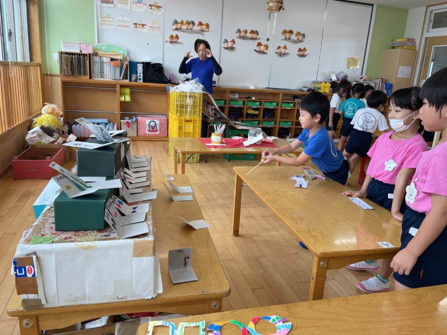年中組では、空間認知やゲーム性を取り入れた縁日ごっこ。