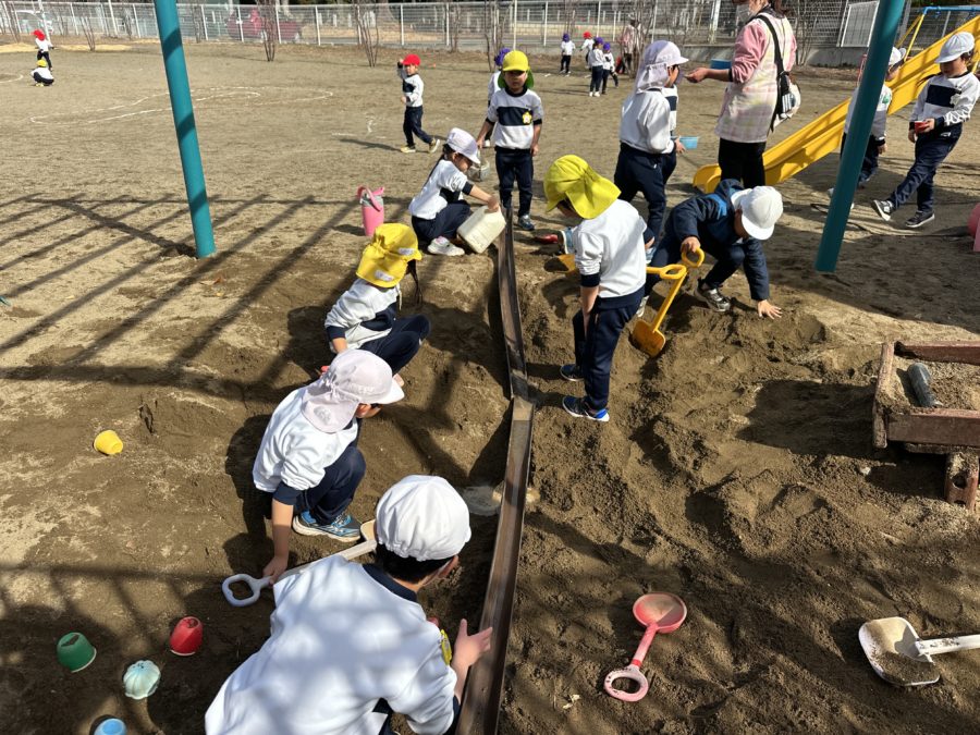 とことんウィーク3日目。3日目になると自分で好きなコーナーを選択し、夢中になる姿がたくさん見られました。竹馬コーナーでは日に日に上達し、「気付いたらここまで歩いてきちゃったよ」という子も、できなくても何度も何度も挑戦し、できるようになりたい!気持ちが勝りましたね。製作コーナーでは、光を取り入れた遊びで、今日はお日様も出てきてくれたので光を感じながら作品を日に透かしていました。ゴム跳びや大縄跳びでは、自分の記録に挑戦し目標を決めてそれに向かって頑張る姿が頼もしかったです。年長さんはずっとやりたかった砂場遊びで大盛り上がり。役割を決めたり、こうしたい、ああしたい思いをぶつけながら共同的に遊ぶ姿が見られました。