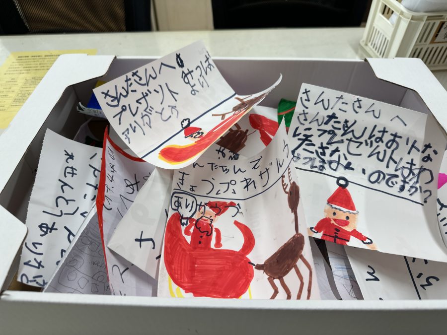 今日は朝からサンタさんのお話しで子どもたちは大はしゃぎでした。サンタポストには続々と「サンタさんプレゼントありがとう」のお手紙を入れに子どもたちがやって来ています。子どもたちは感謝を伝えることが身に付いてきているようです。言葉であったり、文字であったり、絵であったり自分の方法で。そんな子どもたちの姿を見ていると、本当に幸せな時間を過ごさせていただいています。「今日は25日だからチキン食べて、ポテト食べて、ケーキ食べるんだ。だから、とっても幸せなんだ」と言った年長さんの女の子。子どもたちの笑顔は、本当に素敵です。今日はそれぞれのご家庭のそれぞれのハッピーがたっぷりの日ですね。