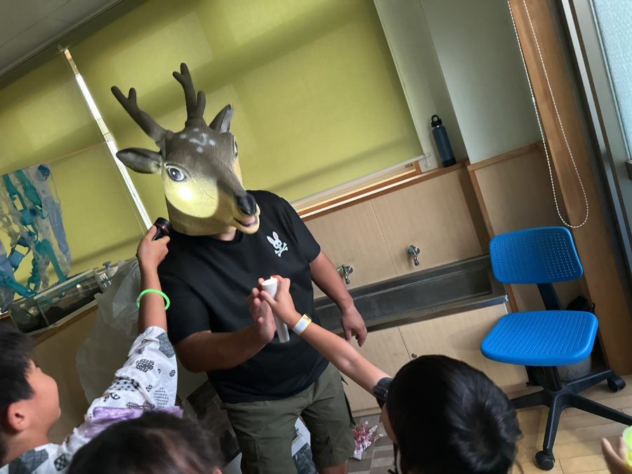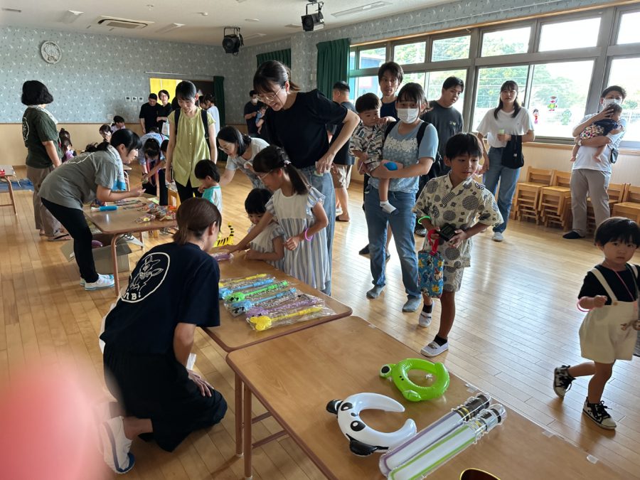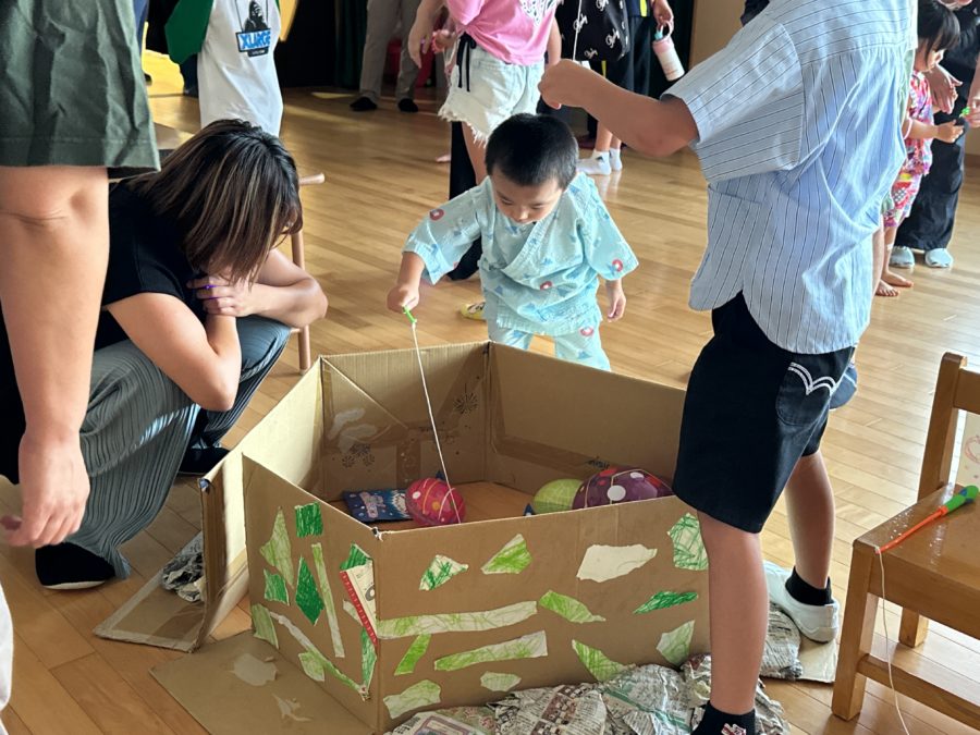 23日(土)の縁日ごっこでは、子どもたちが作ったお化け屋敷を行いました。自分のお化けを探したり、ちょっとした縁日のゲームで楽しんだりと2025年の夏の思い出の一つになったのであれば幸いです。 なかなか来れない夜の幼稚園の探検も、子どもたちにとっては楽しかったようで、久しぶりに会えたお友達と話が盛り上がっている姿が見られました。